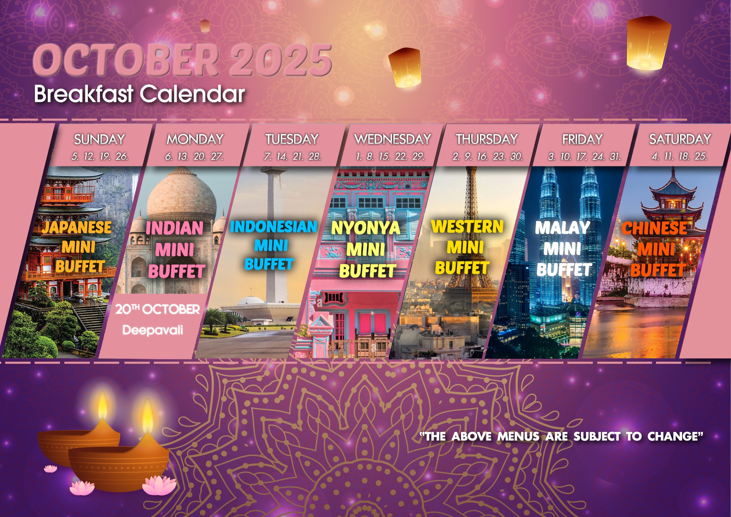 Kindly be informed that our breakfast service at THE SKY CAFE “Rooftop Garden” on the Sky Lobby floor is provided by our associates called Bang Herry / Rizal (“Bang” means brother in Malay language). It is the form of daily different Cultural Mini Buffet cooked by Bang Herry and the friendly service by Bang Rizal.